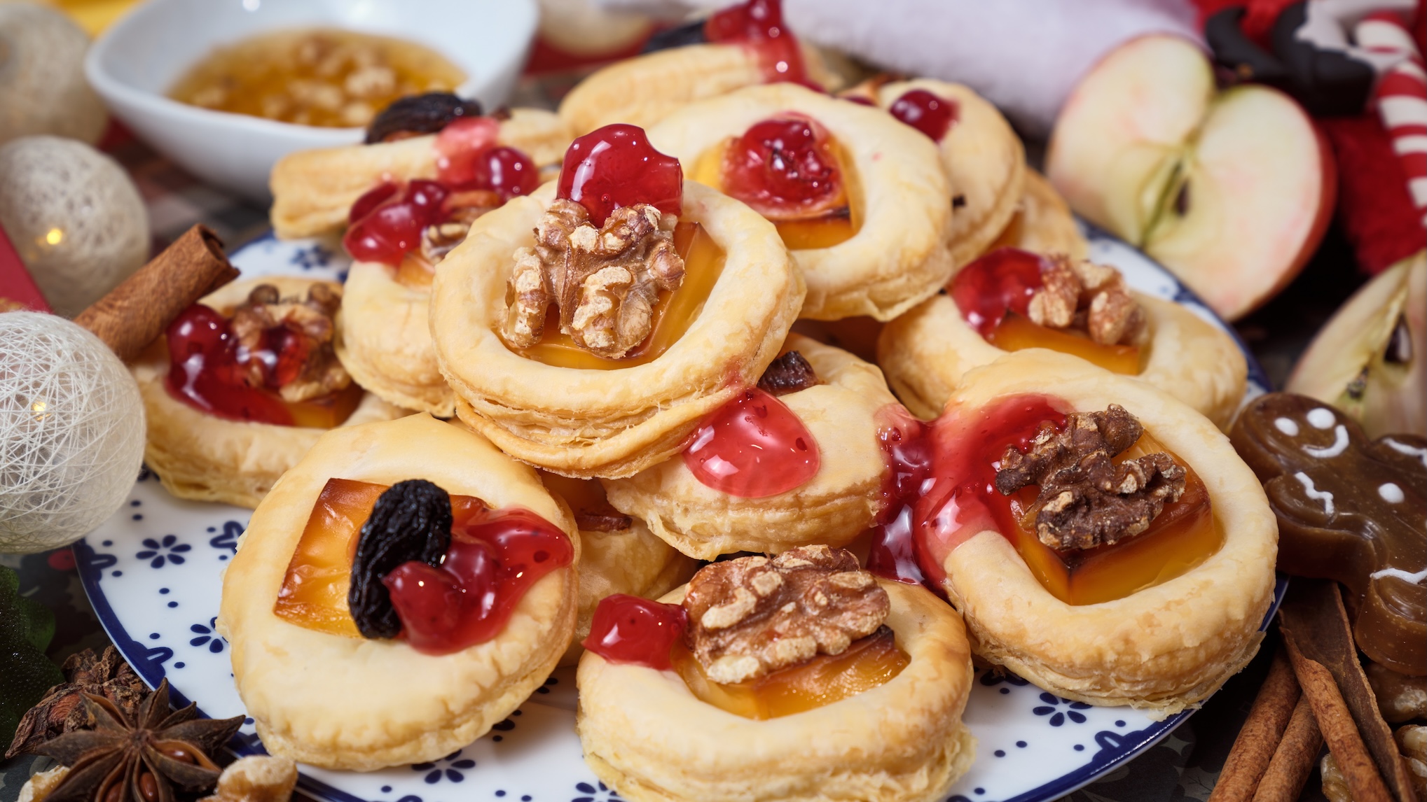 Chrupiące ciasteczka na cieście francuskim to idealna świąteczna przekąska — prosta, szybka i pełna aromatów. Słodycz jabłka, kwaskowa żurawina i delikatnie słony ser Cheddar Sertop tworzą wyjątkowe połączenie smaków.