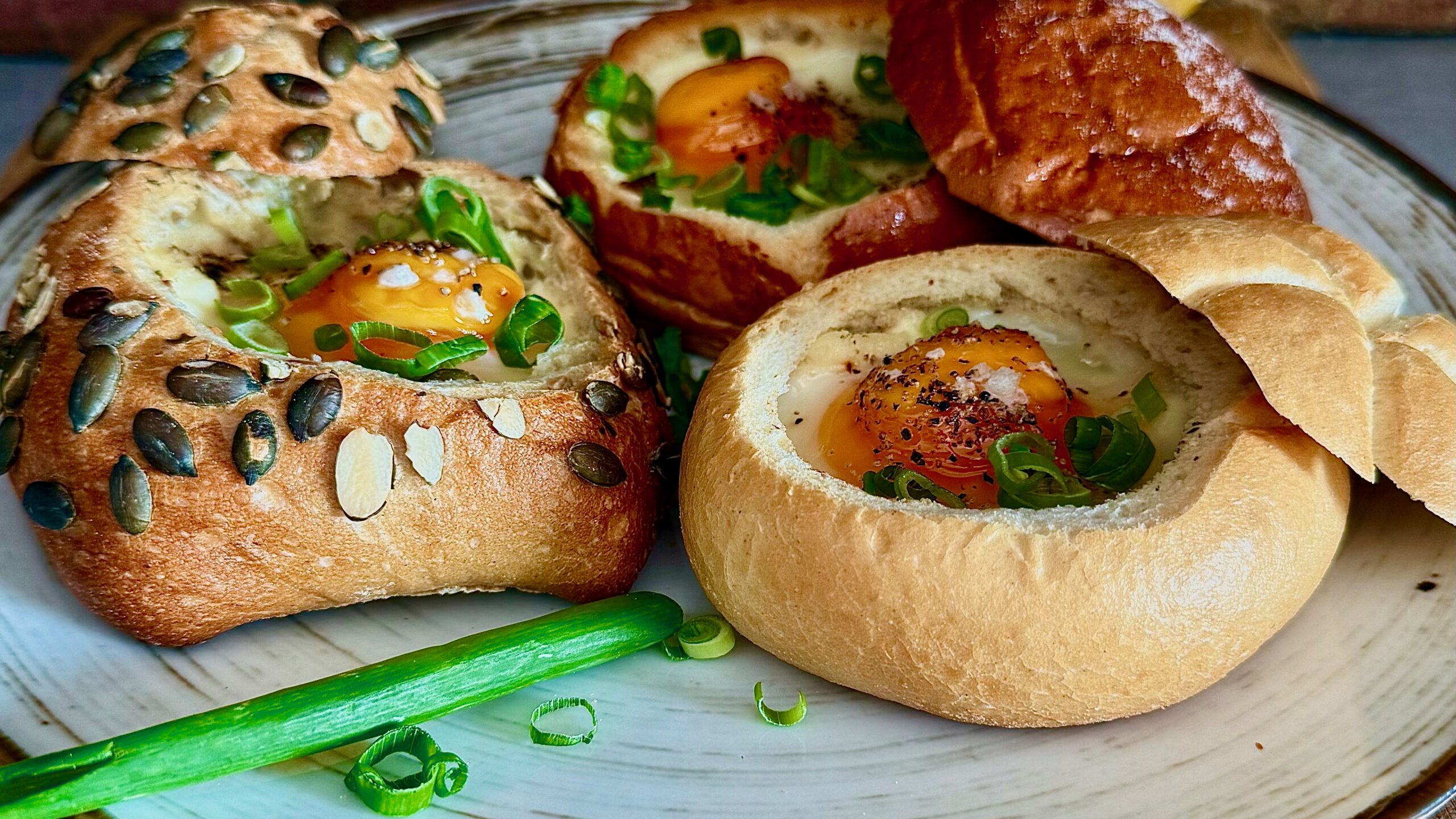 Wstaw bułki do piekarnika i piecz przez ok. 15 minut – białko powinno się ściąć, a żółtko pozostać lekko płynne.