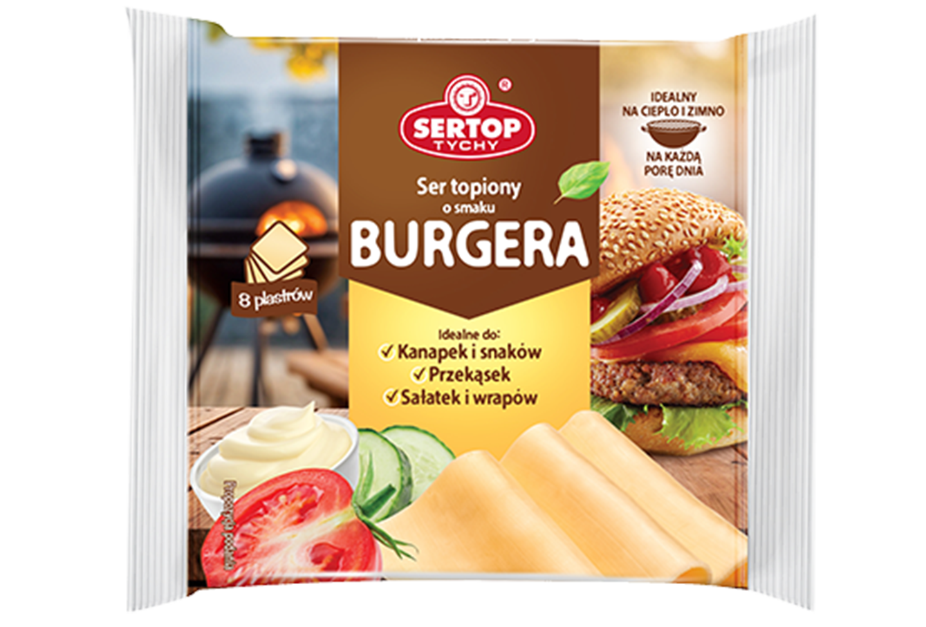 • 4–8 plastrów sera topionego o smaku burgera Sertop