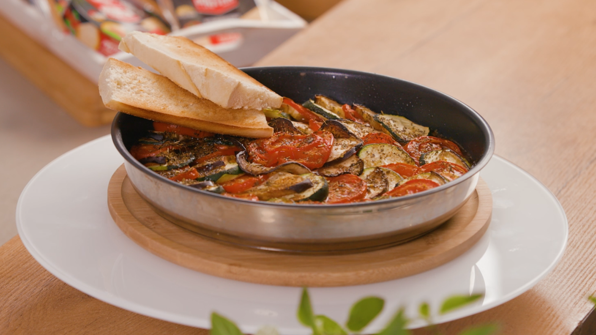 Kolorowe, lekkie i aromatyczne danie inspirowane kuchnią francuską. Pieczone warzywa w towarzystwie kremowego serka topionego to idealna propozycja na letni obiad lub kolację.