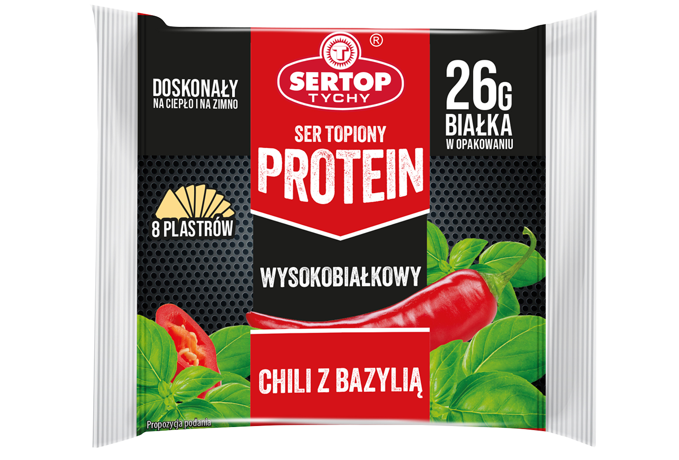 • 2 opakowania serka topionego w plastrach proteinowy Chili z bazylią