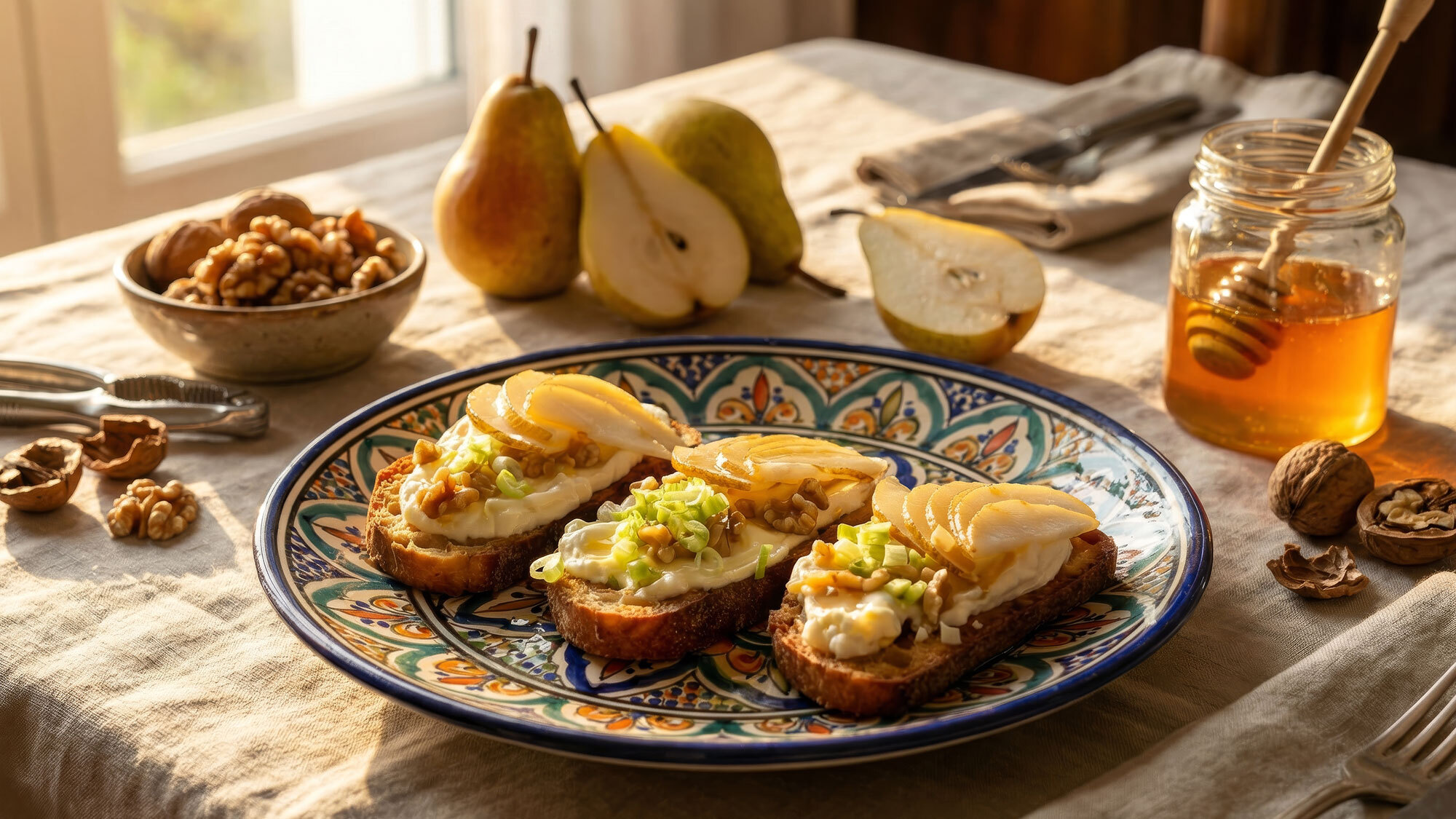 Tosty z patelni z serem, orzechami i gruszką